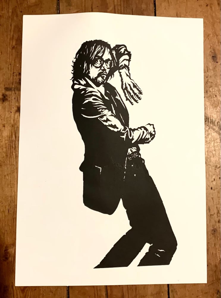 When screen printing you get what are called “miss prints”, this is where the prints have slight imperfections that are not good enough to be sold in the regular run, these are saved and normally used as gifts, prizes or promotional items. We’ve gathered up all the Jarvis Cocker ones and are letting them go.