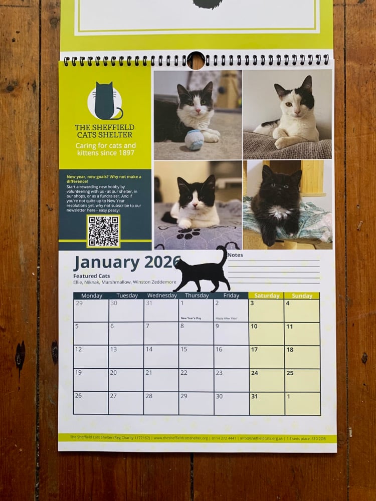 SHEFFIELD CAT SHELTER V BUBBA2000 2026 CALENDAR.